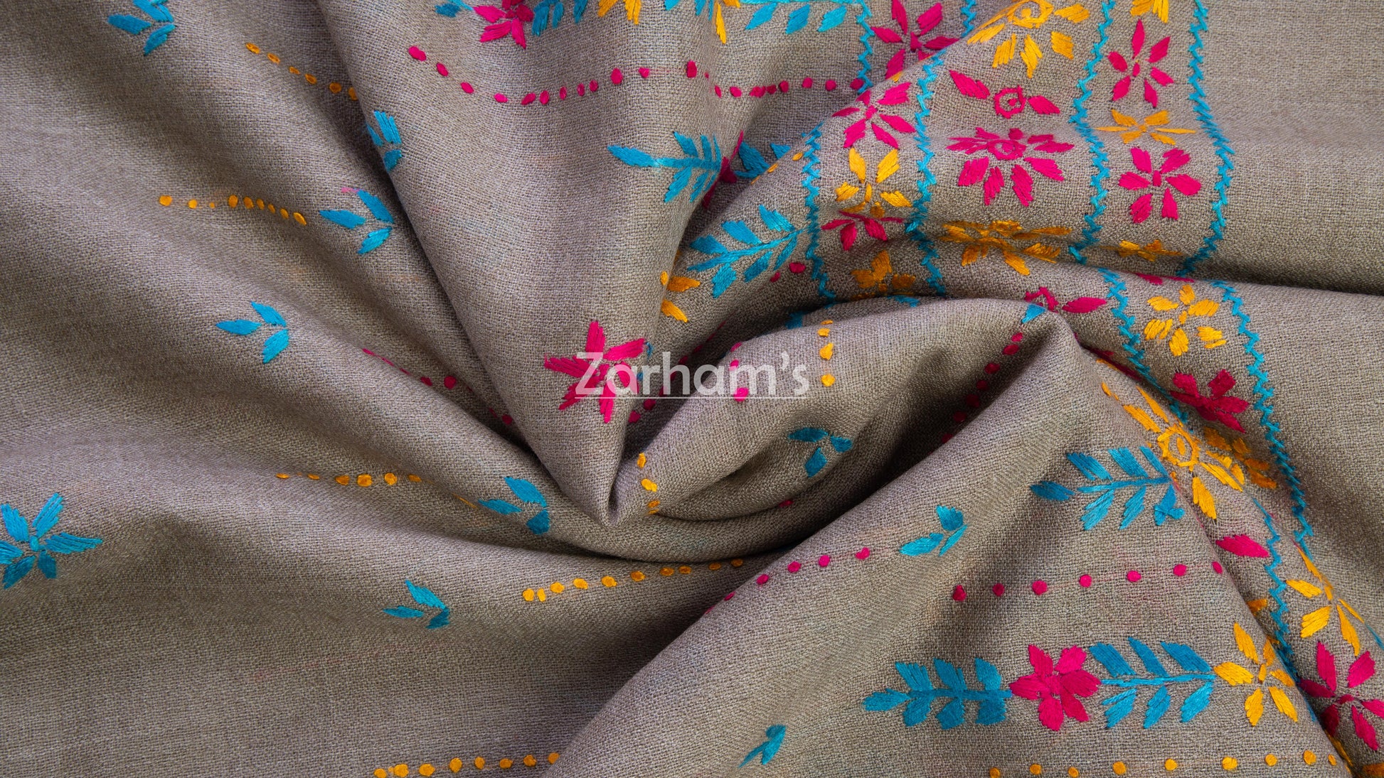 Wrap yourself in timeless elegance with our 100% handmade premium-quality pure woolen shawl, crafted in a rich Grey hue and adorned with intricate multicolor embroidery. Finished with delicate net work and a striking heavy border, this winter essential blends heritage craftsmanship with sophisticated style.