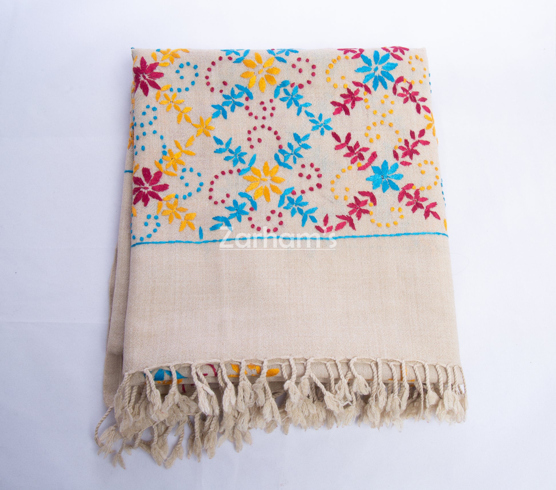 Handmade Pure Woolen Shawl with Multicolor Embroidery & Heavy Border