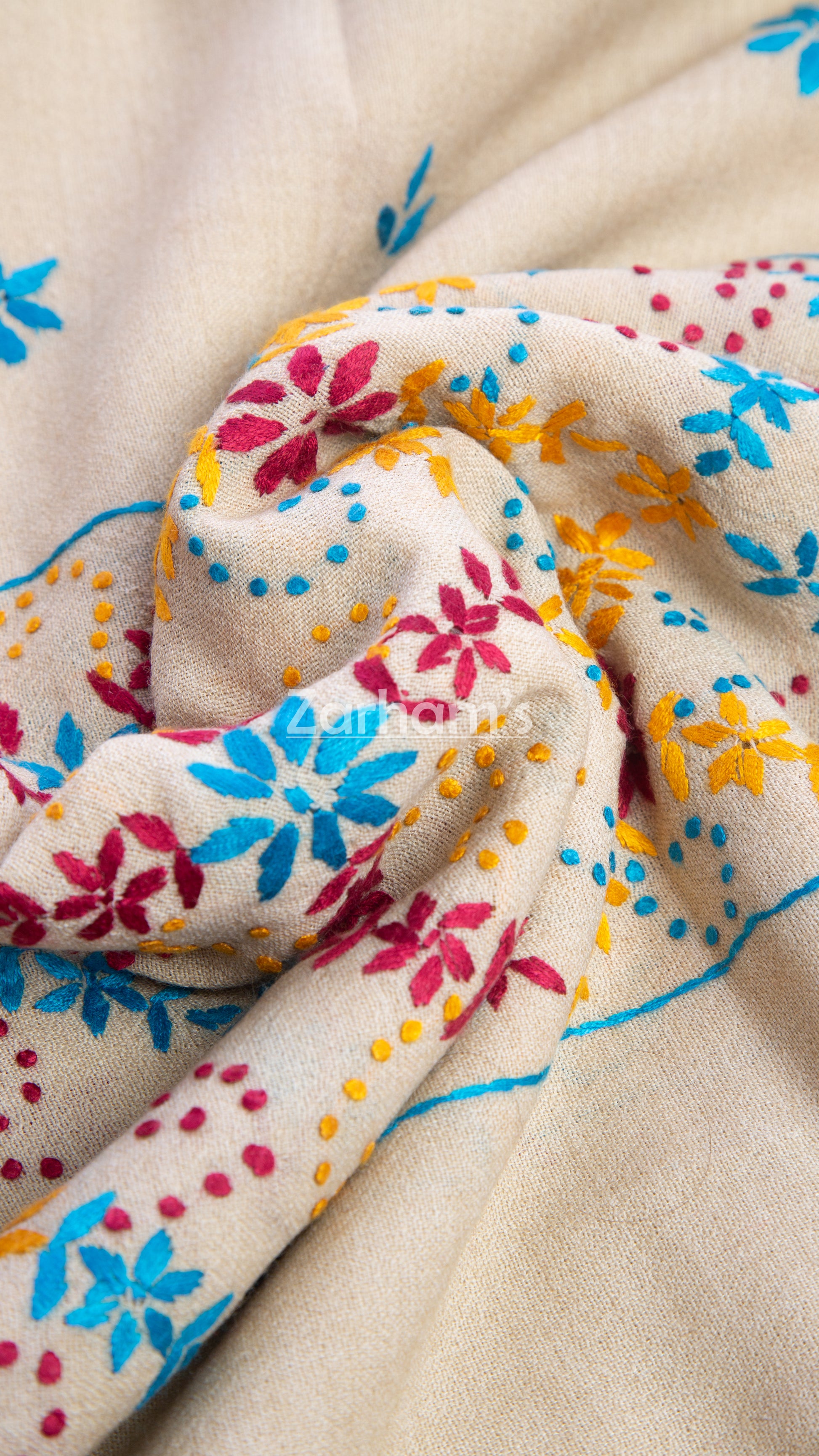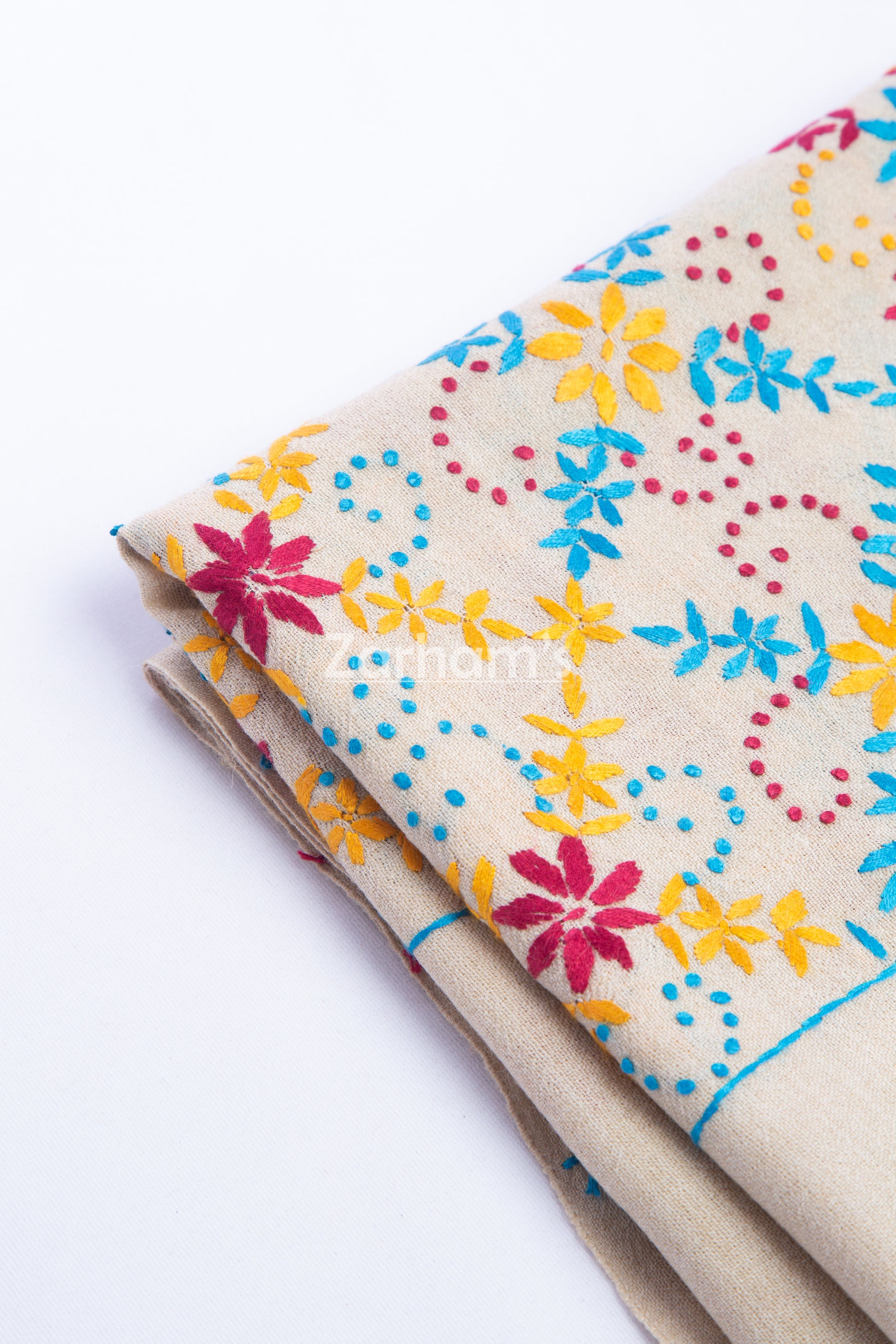 • Color: Camel Brown with Multicolor Embroidery