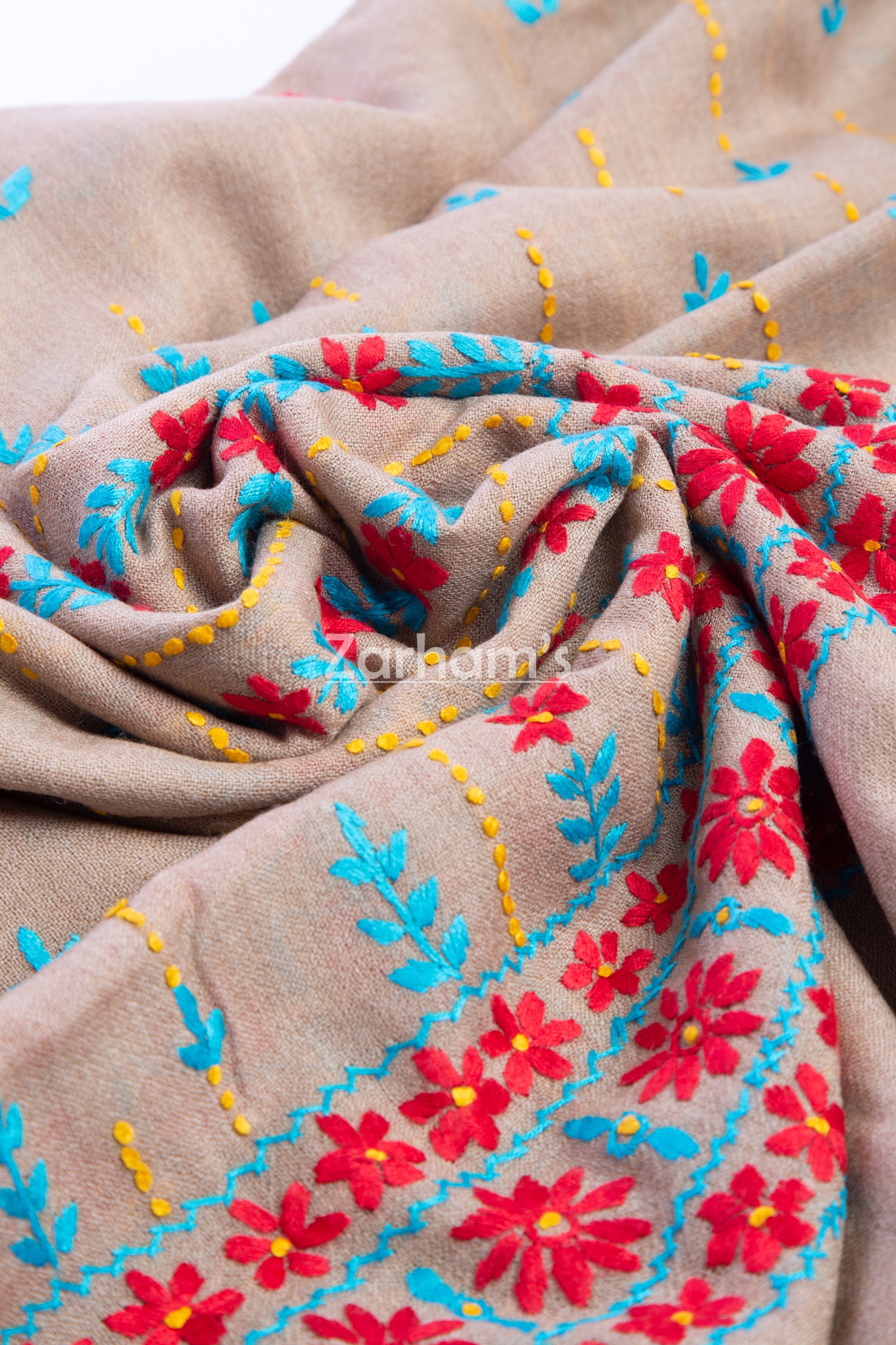 Color: Camel Brown with Multicolor Embroidery