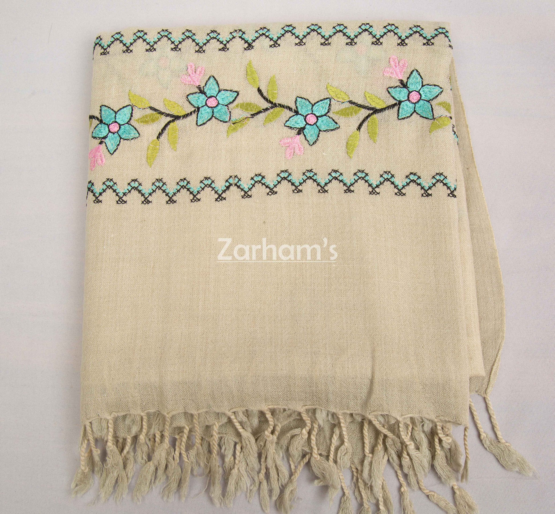 Handmade Pure Woolen Shawl with Multicolor Embroidery & Heavy Border