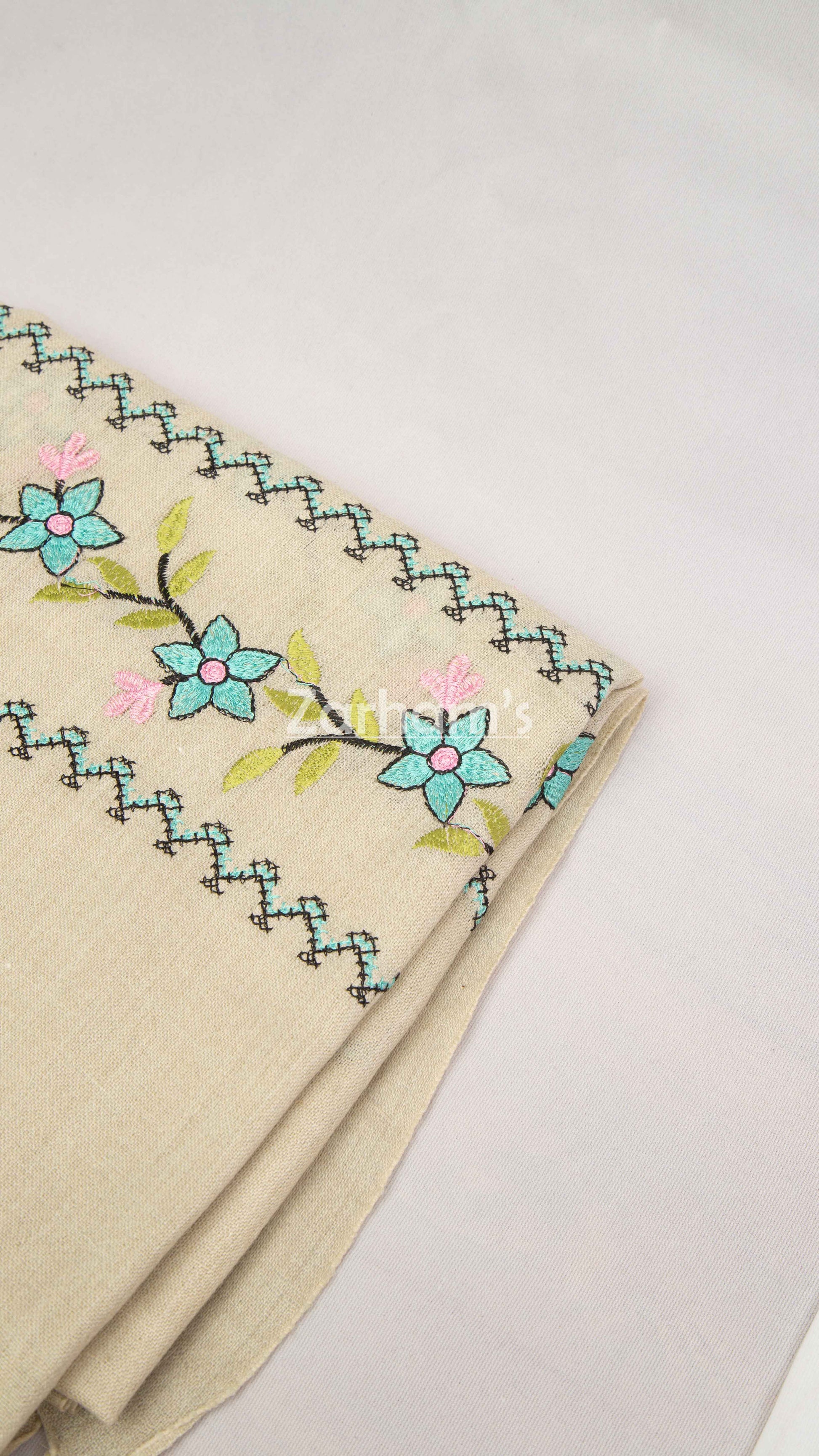 Wrap yourself in timeless elegance with our 100% handmade premium-quality pure woolen shawl, crafted in a rich Off-white hue and adorned with intricate multicolor embroidery. Finished with delicate net work and a striking heavy border, this winter essential blends heritage craftsmanship with sophisticated style.