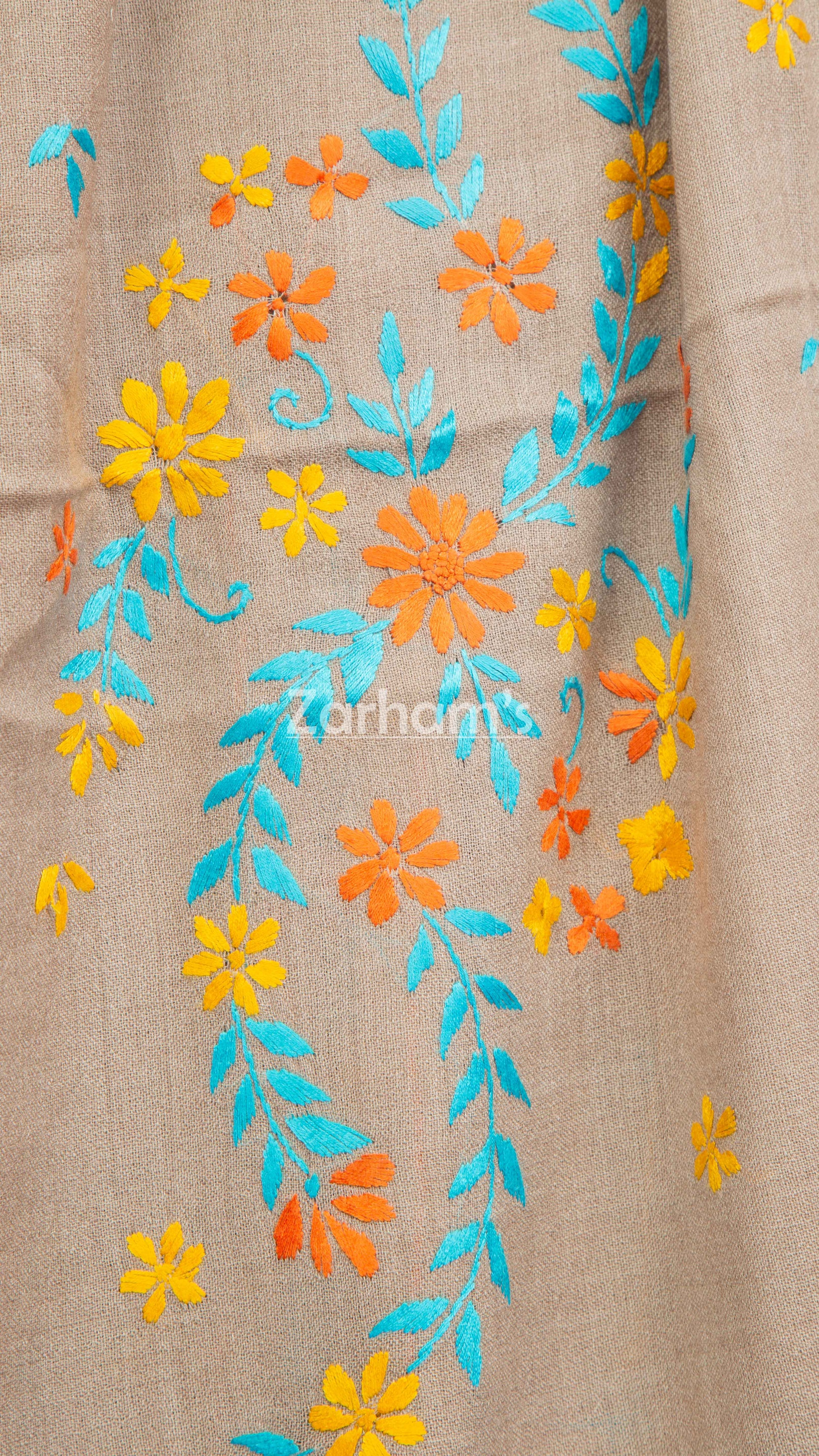 Handmade Pure Woolen Shawl with Multicolor Embroidery & Heavy Border