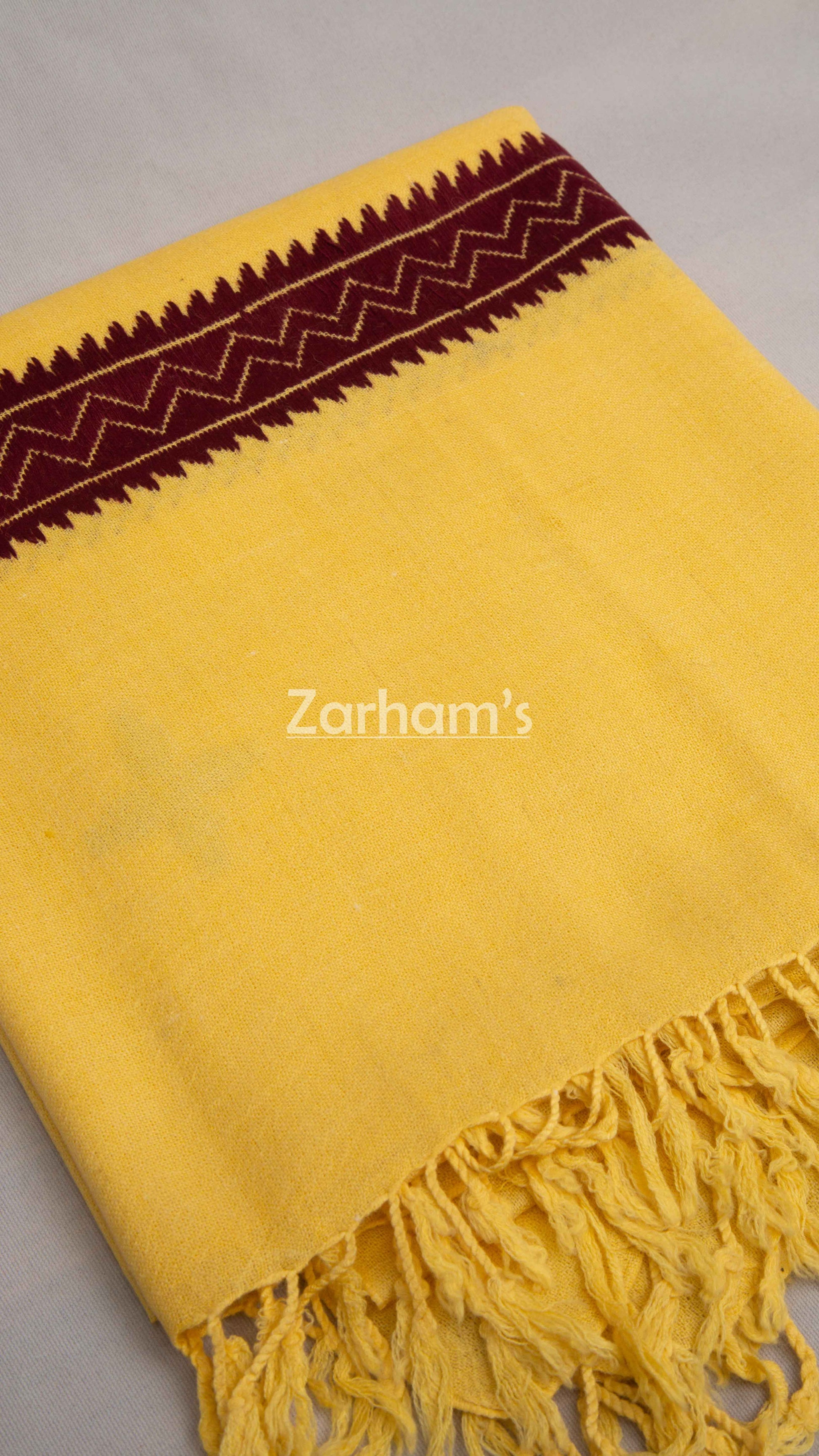 Wrap yourself in timeless elegance with our 100% handmade premium-quality pure woolen shawl, crafted in a rich Yellow hue and adorned with intricate multicolor embroidery. Finished with delicate net work and a striking heavy border, this winter essential blends heritage craftsmanship with sophisticated style.